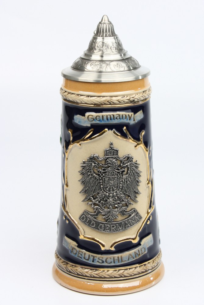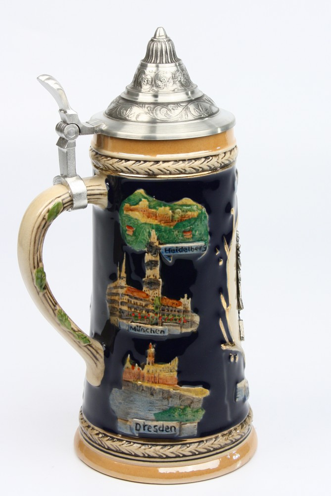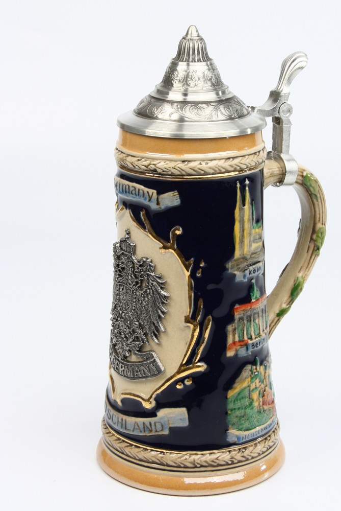 Tags: Bierkrug, Deutschland, Keramik, Relief, Steingut, Zinnplakette