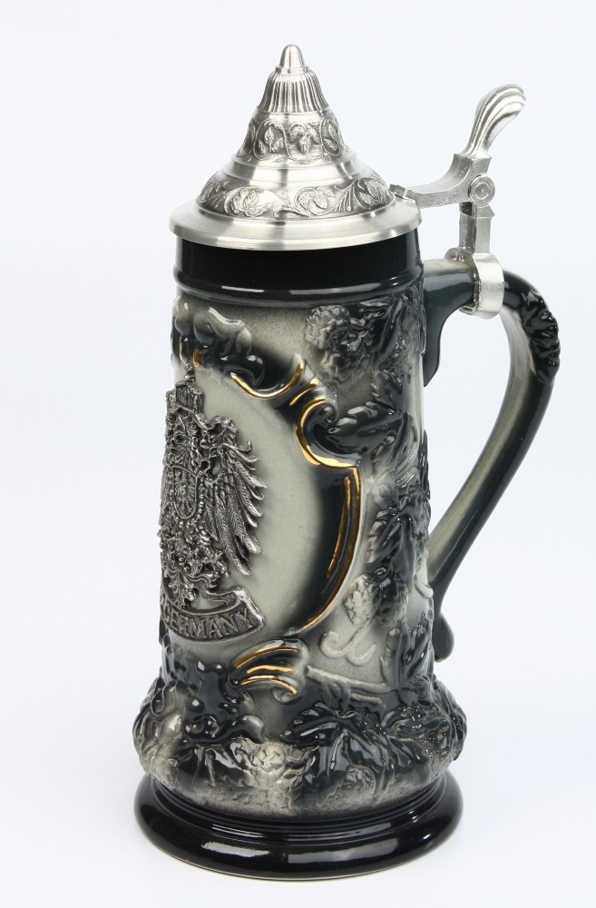Tags: Bierkrug, Deutschland, Keramik, Relief, schwarz, Steingut