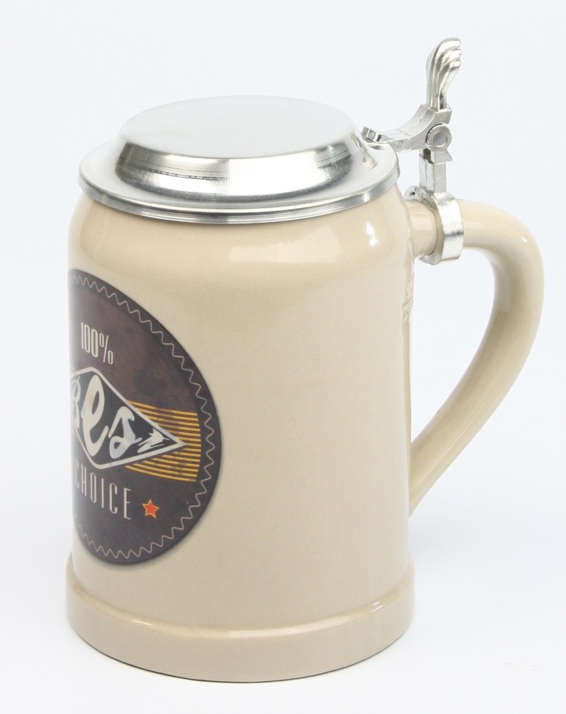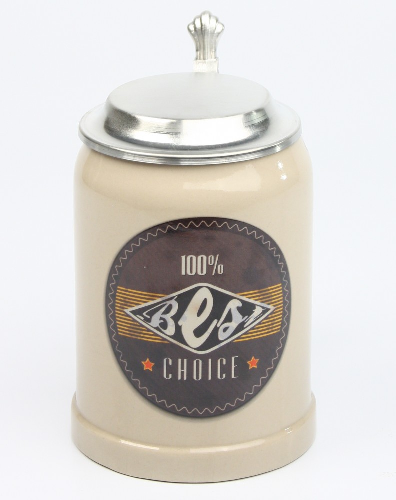Vintage Bierkrug “Best Choice” mit Flachzinndeckel