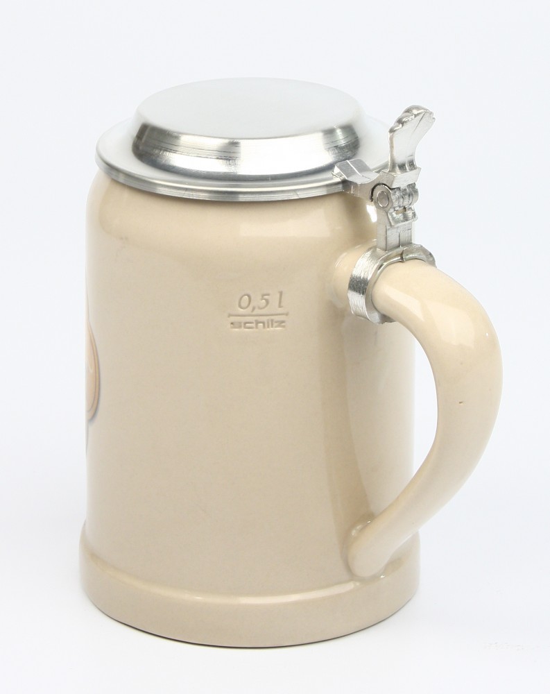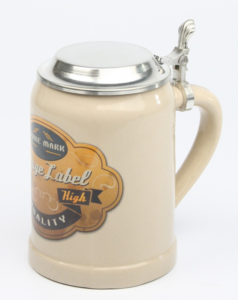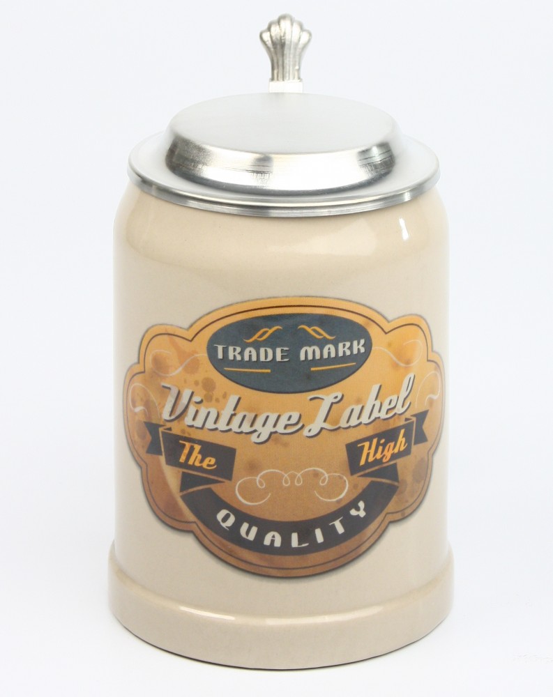 Vintage Bierkrug “High Quality” mit Flachzinndeckel