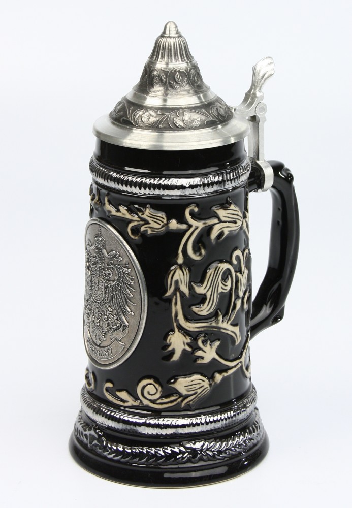 Tags: Bierkrug, Keramik, Old Germany, Relief, Steingut, Zinnplakette